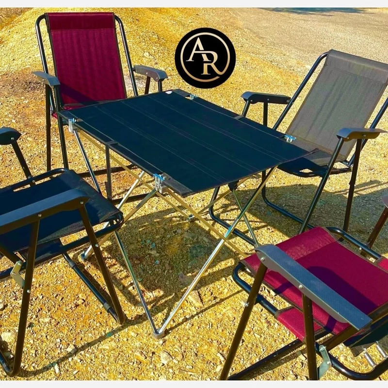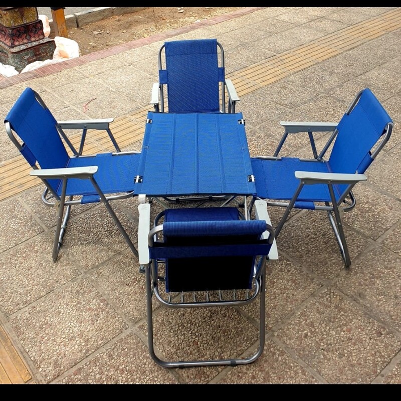ست میز صندلی ساحلی تاشو مسافرتی دسته مبلی 4 نفره فوم دار 7 فنره دسته بسیار مقاوم(پس کرایه)