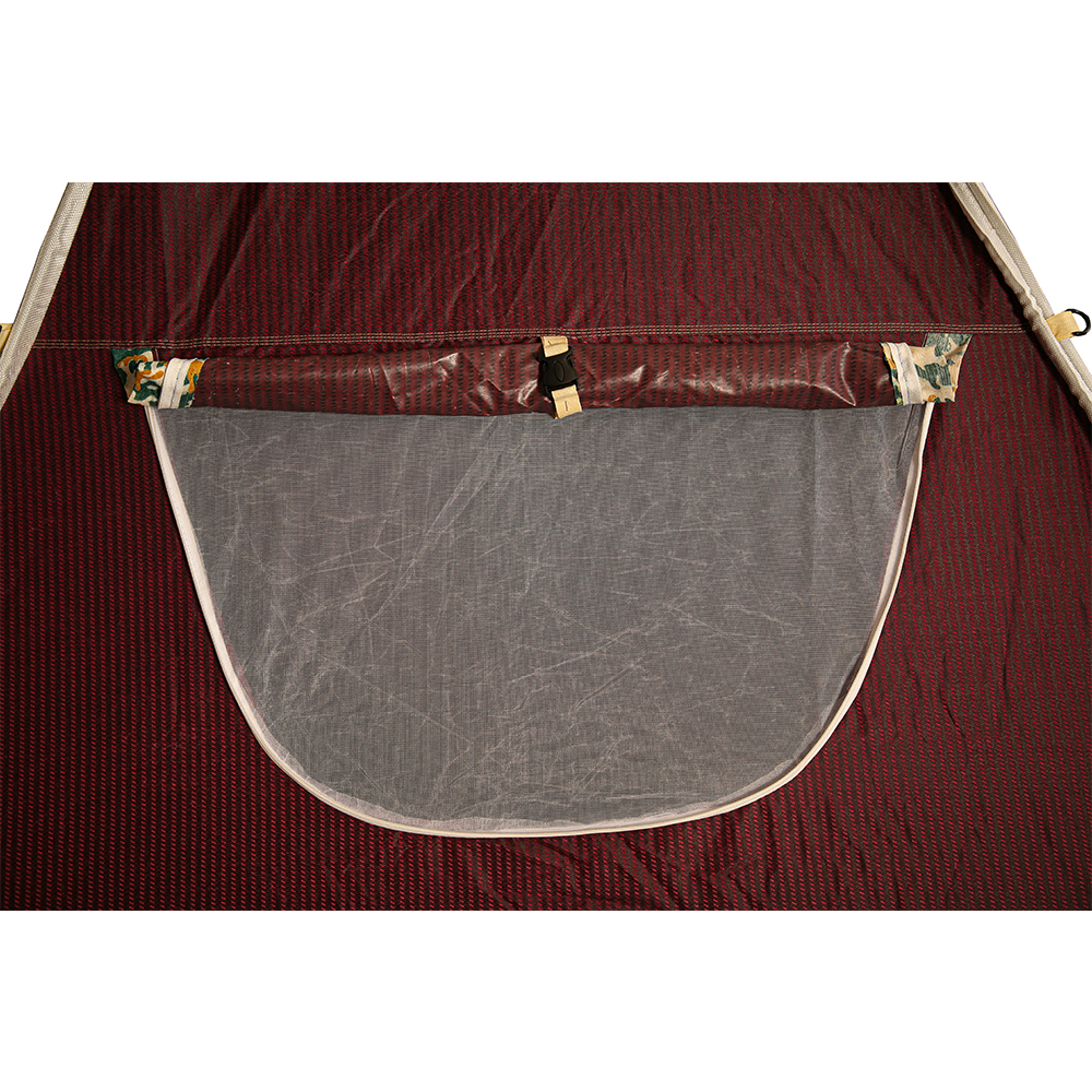 چادر مسافرتی برنو سان ساخته شده از جنس برزنت شمعی با بافت پلی استر که در برابر خراش و بارندگی مقاومت بسیار خوبی دارد.جایگاه فنر از جنس نوار ابریشم ساخته شده است که در برابر سایش مقاومتی بسیار خوبی دارد.چادر فنری برنو سان دارای سه عدد پنجره و یک درب ورودی بزرگ که دارای پشه بند است.زیپ های شماره درب از نمره 10 به کار رفته است که دوام و طول عمر خوبی دارد.جنس کفه چادر از کانتنیری تولید شده است.