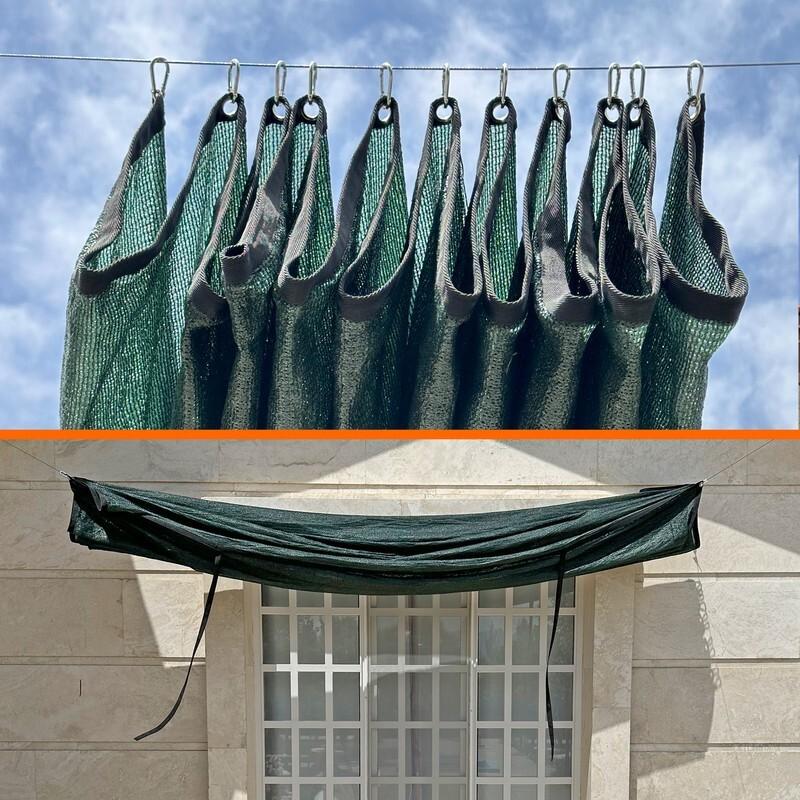 جنس پلی اتیلن این نوع سایبان با عبور تنها 20درصد از نور خورشید مناسب برای گلخانه، تراس، بالکن، پارکینگ، حیاط و... میباشد. همراه با دوخت و نصب حلقه. بصورت ثابت یا ریلی می تونیم براتون آماده کنیم. ابعاد قابل تغییر می باشد.