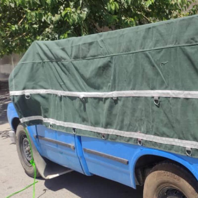 چادر ماشین نیسان برزنتی 9 لایه صد در صد ضد آب با قلاب و دم اسبی سایز 4 در 5