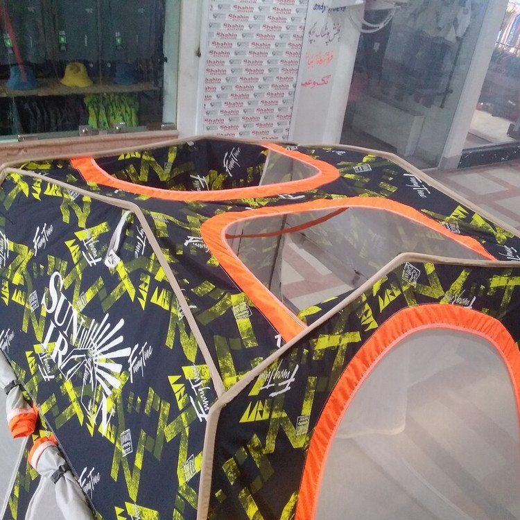 چادر مسافرتی طرح کمپ خانوادگی دوخواب، مناسب طبیعت گردی و کمپینگ میباشد . این محصول دارای 4 درب و دو پنجره بزرگ است . دارای 20 قلاب نگهدارنده در وپنجره و توری است . کف ضخیم است و جنس چادر ضد آب است . داخل چادر یک پارچه قرار دارد که با نصب آن می توانید محیط داخل چادر را به دو قسمت تقسیم کنید . در قسمت درب ها و پنجره ها توری حریر ریز بافت کار شده است. ابعاد 250cmx250cm ارتفاع 2.10 می باشد