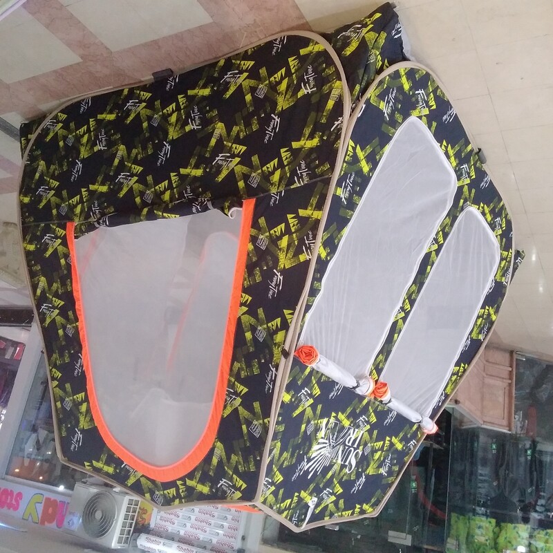 چادر مسافرتی طرح کمپ خانوادگی دوخواب، مناسب طبیعت گردی و کمپینگ میباشد . این محصول دارای 4 درب و دو پنجره بزرگ است . دارای 20 قلاب نگهدارنده در وپنجره و توری است . کف ضخیم است و جنس چادر ضد آب است . داخل چادر یک پارچه قرار دارد که با نصب آن می توانید محیط داخل چادر را به دو قسمت تقسیم کنید . در قسمت درب ها و پنجره ها توری حریر ریز بافت کار شده است. ابعاد 250cmx250cm ارتفاع 2.10 می باشد