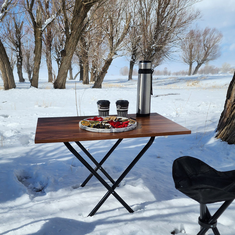 میزهای تاشو کمپی به شما کمک می کند تا فصل جدیدی از سفرهایتان را رقم بزنید و به کمک شما می آید تا سفر شما را لذت بخش تر کند.همچنین به خاطر ظاهر طرح چوب و قابلیت تاشو بودن کاربردهای دیگری همچون میز تحریر، میز اتو، میز کار و یا میز لپ تاپ استفاده نمود.جنس صفحه این محصول ملامینه و دارای نوارهای pvc است و به راحتی با دستمال خیس تمیز میشود بدنه پروفیلی آن تحمل وزن بالایی دارد. این میز تاشو و تنظیم شو است که در مواقع عدم نیاز میتوان آن را کامل تا نمود.