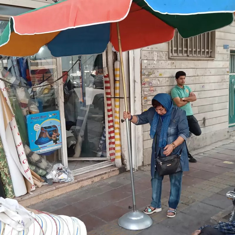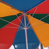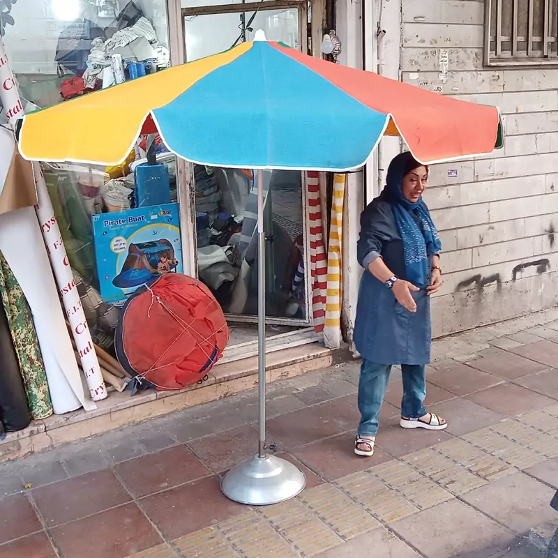 چتر سایبان از جنس برزنت و اسکلت آهنی بسیار محکم و پایه وسط که سایه آن بسیار خنک میباشد ضد آب نیست و برزنتی مناسب آفتاب است دارای یک لوله برای تنظیم ارتفاع و یک پایه برای ایستادن کف زمین است( پایه فلزی) تا شو بوده و در صندوق ماشین قابل حمل است