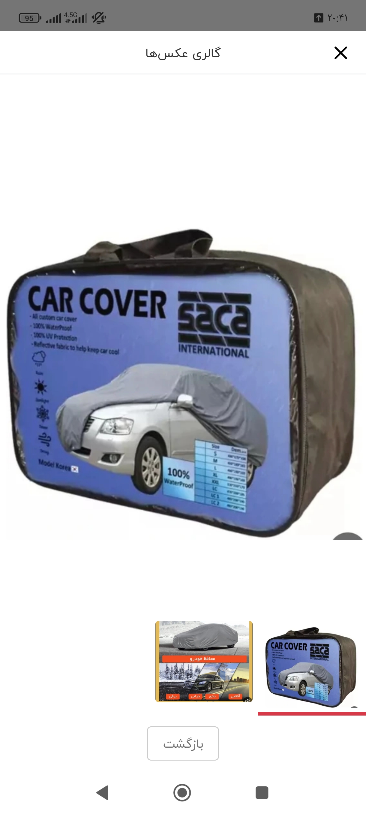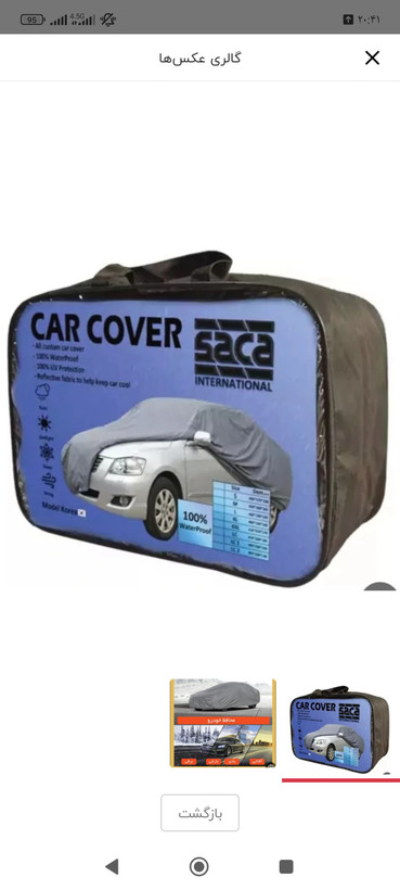 چادر خودرو از برند ساکا پارچه کره ای ضد اب یووی دار مقاوم در برابر افتاب باد و باران کیف دارد جای ایینه دارد جنس داخل کرک که محافظ رنگ ماشین میباشد
