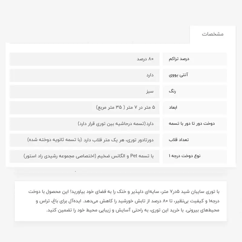 توری سایبان شید، 5در7،دوخت درجه1، 80درصد
