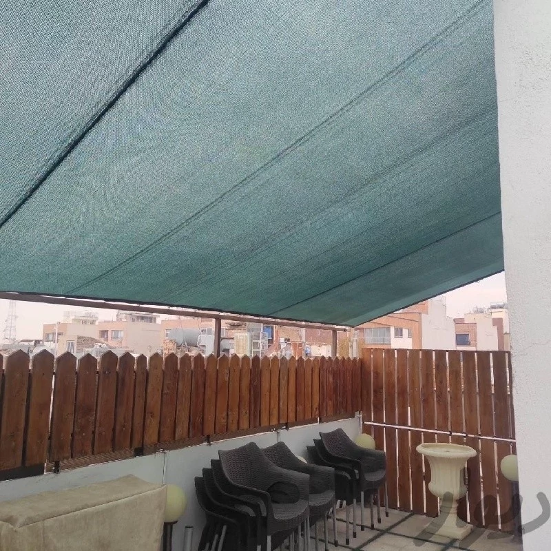 جنس پلی اتیلن نسوز یو وی مناسب برای حیاط، گلخانه، پارکینگ، سایبان استخر، تراس، بالکن، باغچه و... هر یک متر حلقه فلزی دارد.